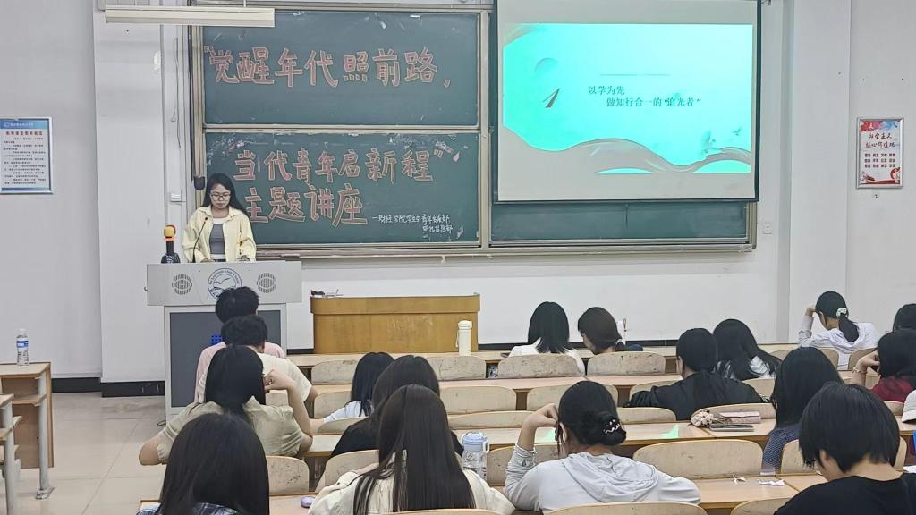 近日,yL23411永利集团财教学生党支部面向学院学生开展“觉醒年代照前路,当代青年启新程”主题讲座。财教学生党支部党员、五四奖章获得者22级财务会计教育专业的李冰钰同志担任主讲。大学期间,李冰钰同志积极投身班级建设,以优异成绩彰显扎实学识,凭借品学兼优的卓越表现,成为同学们学习与生活中的标杆榜样。