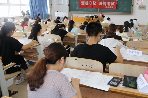 经过向学校教务处申请,我院财务会计教育专业160304班获批无人监考班级,涉及3门课程,无人监考考场共计6个。学生干部持桌牌亮身份参加考试,带头履行诚信承诺。(编审:李宝文)