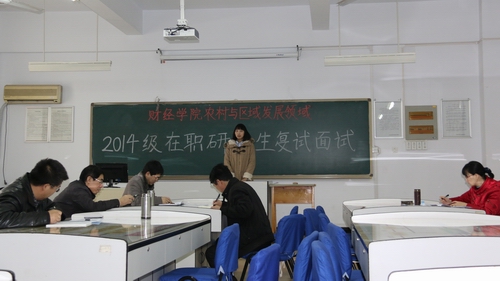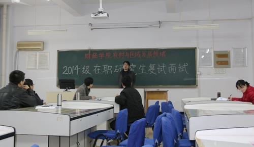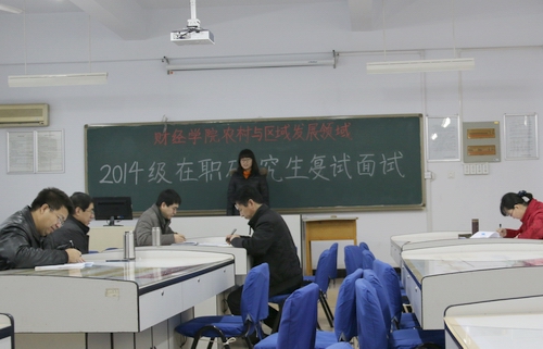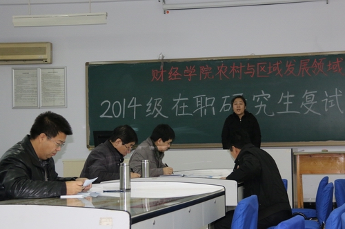 ,我院2014年在职研究生复试工作在A703教室举行。学院领导贾圣武、徐祗坤、杜茂宝、李宝文和李国红老师按照复试工作程序对22名考生进行复试。复试期间,王同坤校长、杨越冬副校长和纪委相关人员到场进行了巡视。