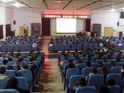 2018年10月23日晚,校学生处和中国人民银行秦皇岛市中心支行联合举办、我院承办的新生征信知识讲座在昌黎校区学术报告厅如期举行。讲座的主题是“关爱信用记录,享受幸福人生”。我院副院长徐祗坤教授、学生处郭立新主任、张丽玲科长出席讲座。