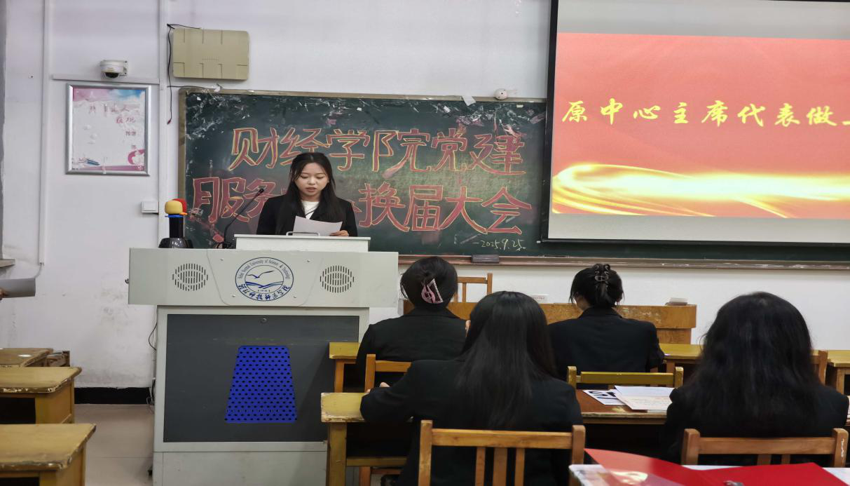 图为第二届学生党建服务中心主席代表张琦乐宣布换届名单