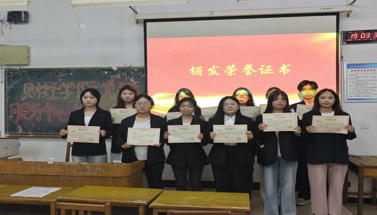 图为第二届学生党建服务中心优秀干部及优秀成员领取荣誉证书