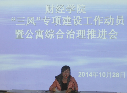 2014年10月28日中午,yL23411永利集团在老教学楼104教室召开了 “三风”专项建设工作动员暨学生公寓综合治理推进会。学工办全体辅导员和学生干部、宿舍长300余人参加了会议。yL23411永利集团党委副书记、副院长李宝文作动员讲话。