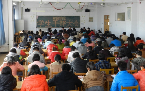 2014年11月13日中午,学院在A709教室召开学生干部工作大会。学院党委副书记、副院长李宝文出席大会并做主题讲话。学院分团委、学生会学生干部,各班班委会、团支部主要学生干部近200人参加大会。会议由学工办主任陈有为主持。
