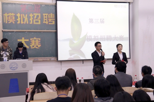 决赛中,通过初赛选拔的10位选手首先逐个登台比拼,提交个人简历,角逐心仪职位,答辩评委疑问,展示个人风采。评委老师兼任企业招聘负责人,针对企业具体岗位针对选手进行招聘评估和考察。经过激烈的角逐,财务会计教育专业16级贾晓雅、财务会计教育专业15级张玉琨、财务管理专业16级李炜然获得最佳优胜奖。场上选手表现精彩,场下观众不时报以热烈掌声。(编审:李宝文)